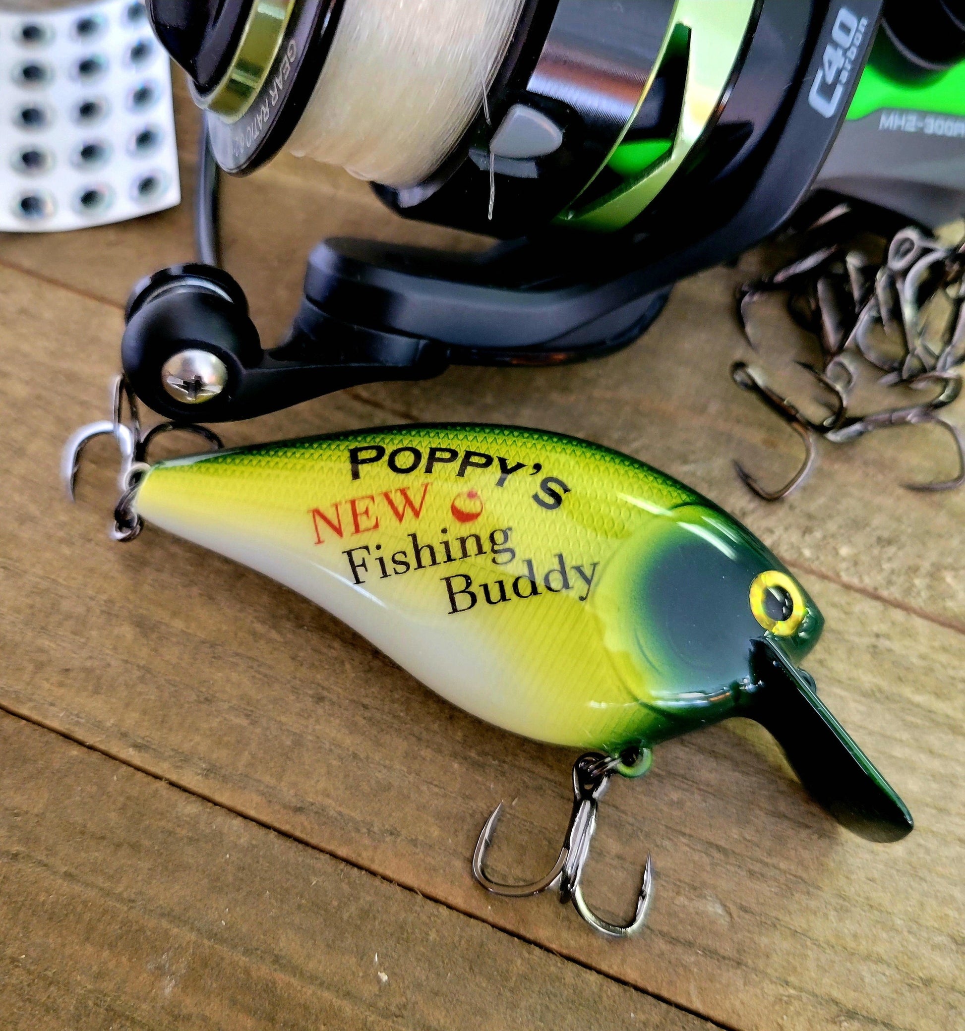 Very unique new baby announcement for poppy. A custom custom lure customized for your gender reveal. Simply let us know what you want printed on the lure during check out. Additionally, each lure is handmade with care and attention to detail. Perfect for special occasions like baptisms, retirements, or Father's Day.